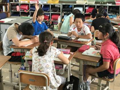 国語では「学級討論会」に向けて準備を進めています。それぞれの議題の肯定意見と否定意見を出し合っています。