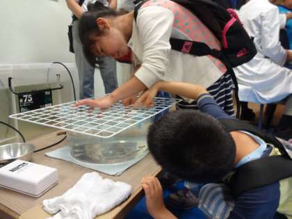 ナマズやイモリ,ドクターフィッシュに触れたり