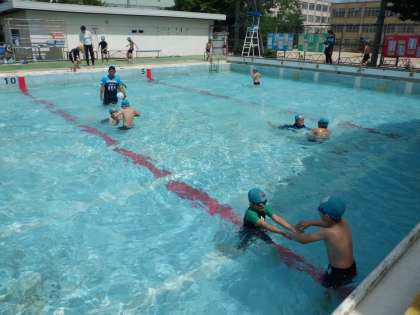 今の泳力を確認したあと、顔つけや浮く練習をしました。