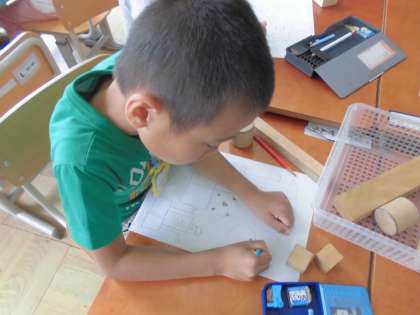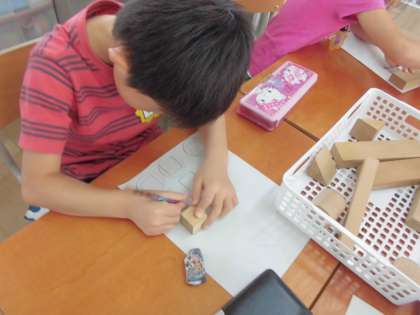 いろいろなかたちの積み木をつかって,かたうつしをしました。