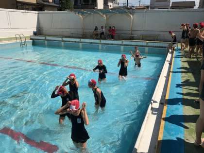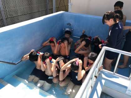 気温は高かったのですが、水が冷たくて、入水時に悲鳴のような声をあげていました。それでも、とても気持ち良かったようです。