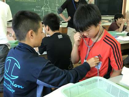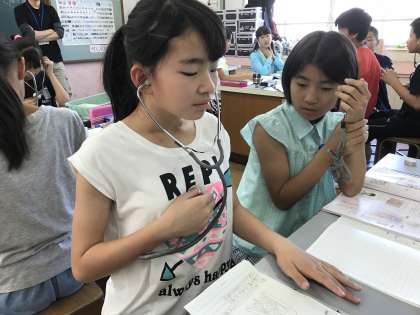 聴診器を使って心臓の音を聞いてみました。「あれ?何にも聞こえへん…」そんなことはありません!無事ドックンドックンという音が聞こえてきました。
