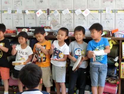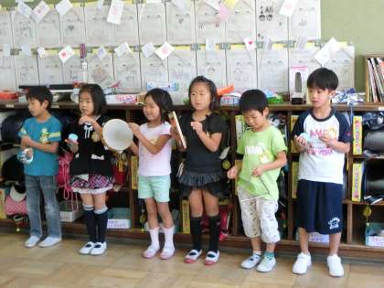 いつもは手拍子ですが,今回は楽器を使いました。