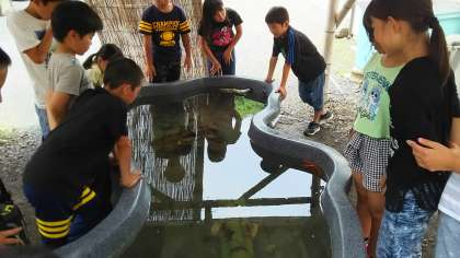 食べ終わったあとは、海の生き物の観察をします。