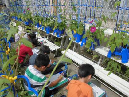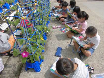 ぐんぐんとつるがのびて,花がたくさん咲いています。