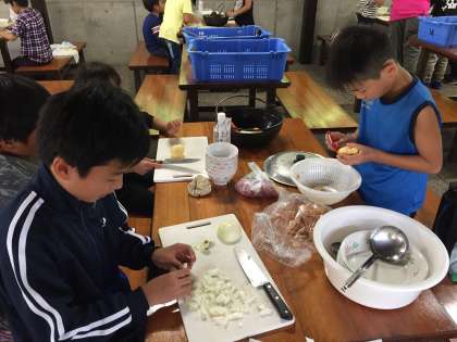 ニンジンやじゃがいもの皮を一生懸命むいている人、玉ねぎを切りながら涙する人…
