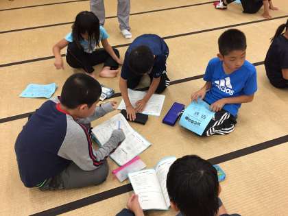 一日の終わりは班会議です。今日の活動を振返り,明日の活動を確認します。