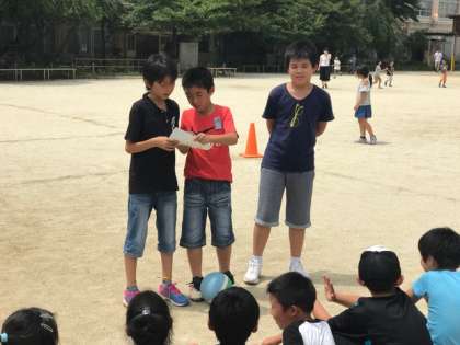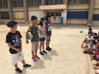 運動委員会主催のドッジボール大会。3年VS4年。白熱の昼休みになりました。