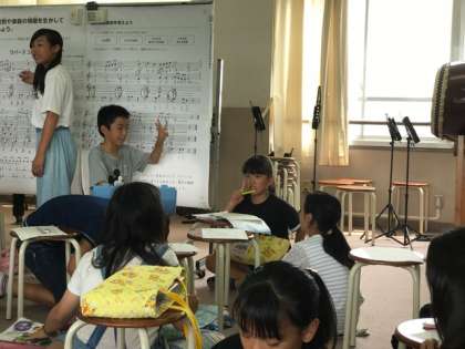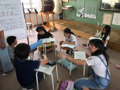 合奏に取り組んでいます。音楽室はエアコンが効かず・・・、それでも一生懸命頑張っています。
