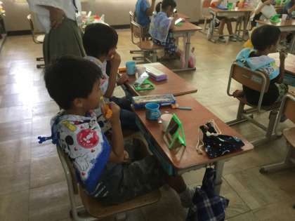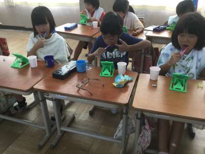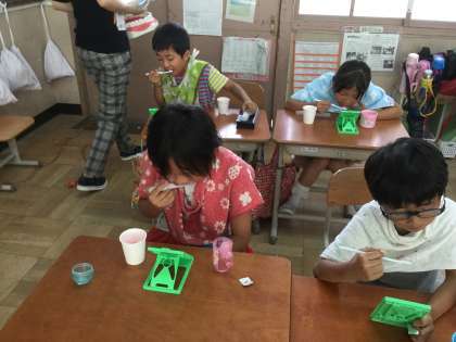 赤い色がなくなるように,丁寧に歯磨きをします。