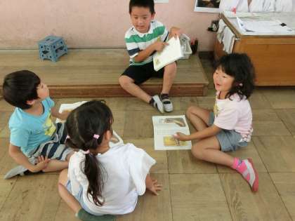おむすびころりんでは,役に分かれて音読発表会をすることを目標に取り組んでいます。今日は役割分担をした後に練習をしました。どのグループも真剣です。