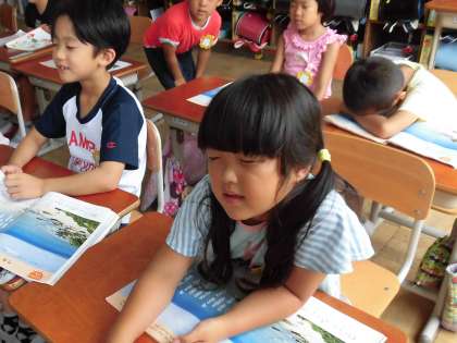 目を閉じて,心に想像した映像を映しながら聞きました。