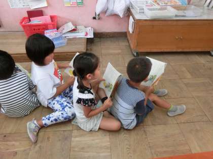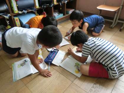 グループに分かれて,「おおきなかぶ」の音読を練習しました。