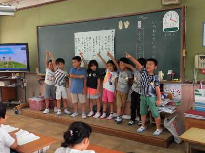 「漢字が隠れているよ!」「さわやかな感じがする」「いろんな読み方ができるってわかりました!」と,楽しく学習できました。みんなで『いちねんせいの一!いちばんはじめの一』と声を揃えたときは,みんな思わず笑顔でした。