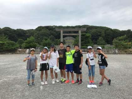 明治天皇陵です。「大きい!」「古墳見たい!」直接見て迫力を感じた子どもたちです。