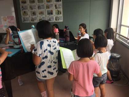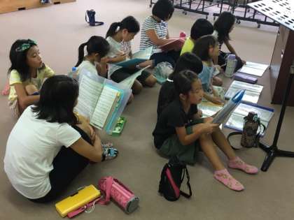 パートに分かれて練習です。楽譜から、曲の様子を読み取って歌声にしていきます。みんなの前で発表するのが楽しみです。