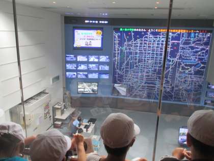 本物の「110番通信指令センター」を目の前にして,子ども達は食い入るように眺めています。