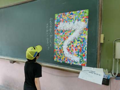 教室に飾っていると,嬉しくて「完成や!イエイ!!」と