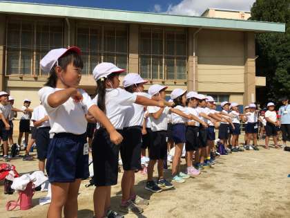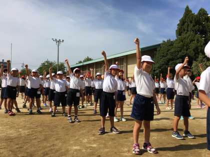 今日の全校体育では,開会式・閉会式の流れと