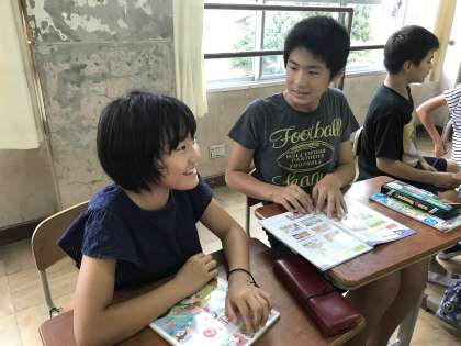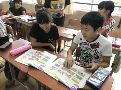 外国語は,「Turn right.道案内をしよう」の学習を進めています。「Go straight.」「Turn right/left.」を使って,友達を道案内しています。