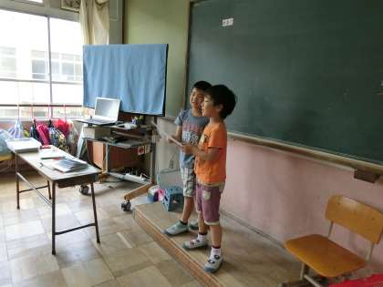 朝の会では,子どもたちが名前を呼んで健康観察をしています。