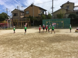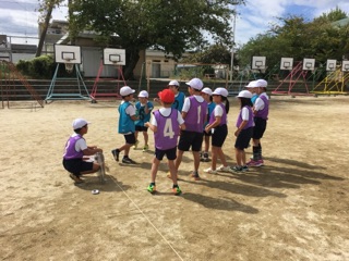 運動会が終わり、久々のボール運動です。2年生の「パスゲーム」とは違い、ゴールの精度が求められます。頑張らなくっちゃ!