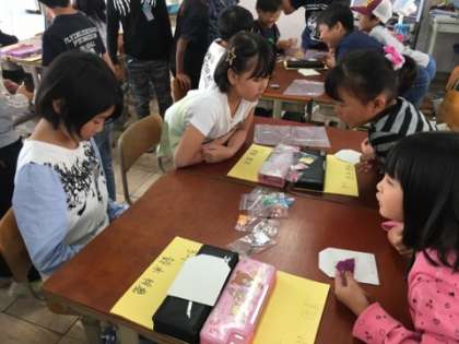 「オリジナルお守り」を作ります。自分の欲しい色、英語を使って言うことができたかな?