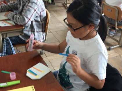 出来上がりも、とても楽しいものができました。欲しい色と形を集めること、楽しく活動ができました。