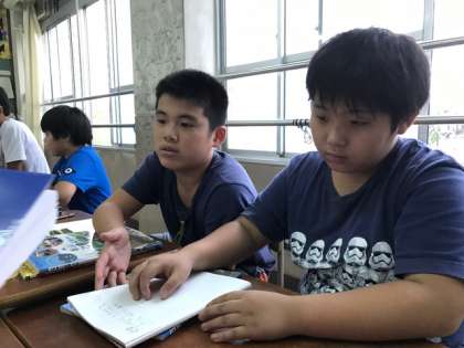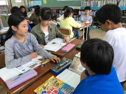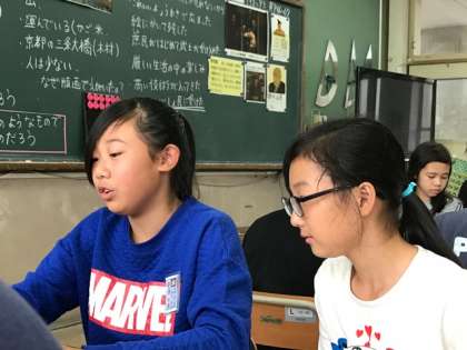 社会科の学習。予想を立てる力がめきめき育っています。そして、班で楽しく検証しています。