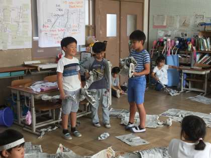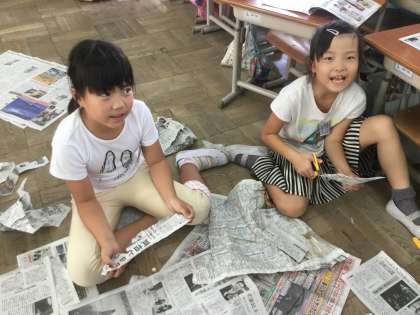 新聞紙だけで,こんなに色々なものがつくれるなんて!とびっくりしていた子どもたちでした。