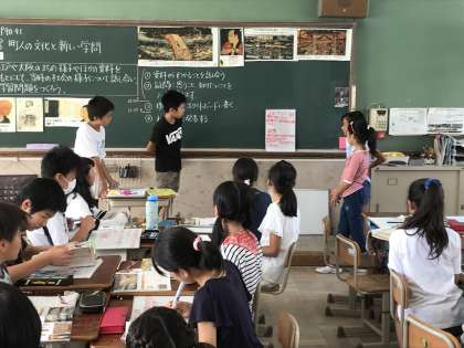 社会では,資料からわかったことや疑問に思ったこと,調べてみたいことをグループで出し合い,その後グループの意見を全体で交流しています。学習問題を自分たちで考える力がついてきました。