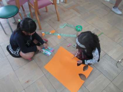 休み時間を使って,衣装を作ります。「どんな衣装がいいかな。」相談しながら,楽しそうに活動しています。