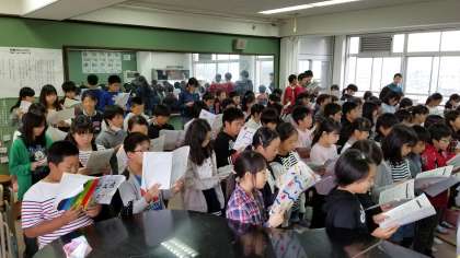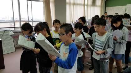 初めて学年で合わせて歌いました。