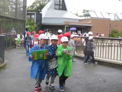 秋の遠足で京都市動物園に行ってきました。ところどころ小雨が降りましたが,友だちと一緒に動物を見てまわって楽しみました。グループでクイズラリーやスタンプラリーをしました。雨で勝手が悪い中,よく頑張りました。