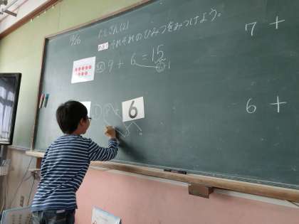 たしざんの学習で,繰り上がりのひみつを見つけました。