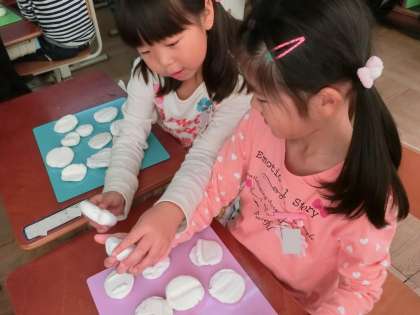 運動場や教室にあるでこぼこを見つけて,粘土で型うつしをしました。