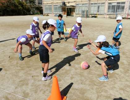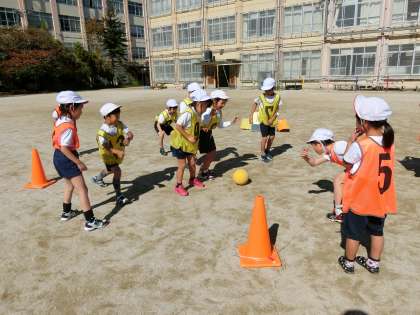 ころがしドッジボールでは,だんだん勝つための秘密を見つけている子が増えてきました。「速くころがす」「よけるときはジャンプ」「はさみうち」等,いろんなことに気付いています。