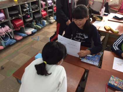 国語科で,「大造じいさんとガン」の学習をしています。学習のまとめとして,お話を読んで,「魅力」を感じたところをカードに書き交流をしました。友達の意見と,自分の意見を比べながら,しっかりと聞くことができました。
