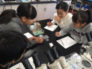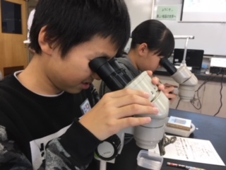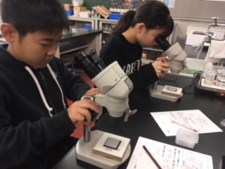 結晶をもっとよく見てみよう!ということで,顕微鏡の使い方を知りました。中学校で使う顕微鏡なので,予習になりました!