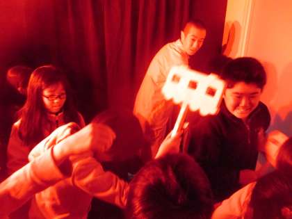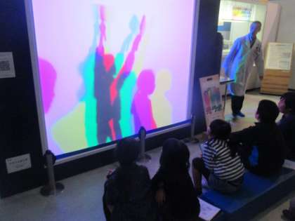 光は,赤・青・緑の三原色からできています。三つの光が重なると何色になると思いますか?なんと,白色です。
