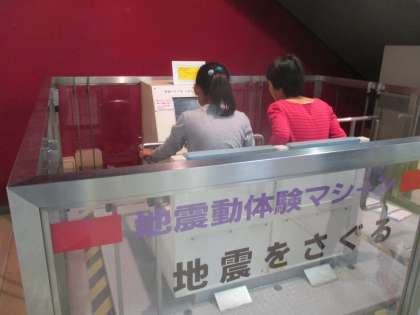 地震の体験をしました。地震はいつ起こるか分かりません。体験を通して,いざというときの備えにしてほしいですね。