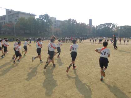 本番前にウォーミングアップをしたり,たすきを渡す練習をしたりしました。