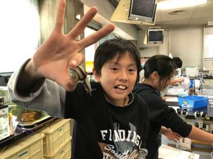 中からかたつむりを取り出して、手に取ってみました。