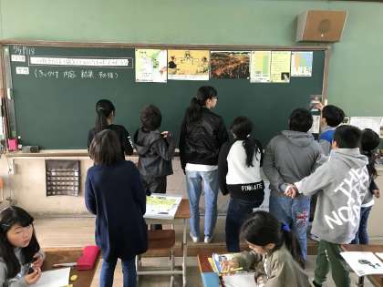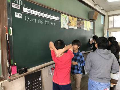 資料を見て,学習問題に対する予想を立てています。資料を見ながら友達との交流が自然と生まれています。