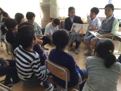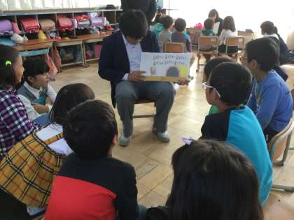 最後は大きな絵本を使って,クラス全員に読み聞かせしてくれました。