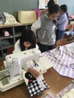 ミシンの扱いも上達してきました。アドバイスをしながらも「自分で作る」ということを大切に進めています!
