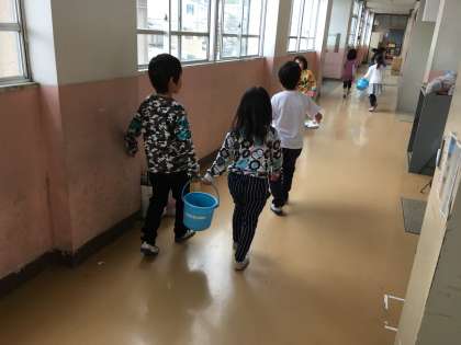 日直の子が一人欠席だったので,他の子が手伝っていました。
