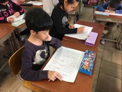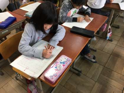 国語科で取り組んだ感想文の交流をしました。普段の会話ではなく、文章を通した会話のようなもの。「こんなことを考えていたんだな」と新たな発見がありますね。