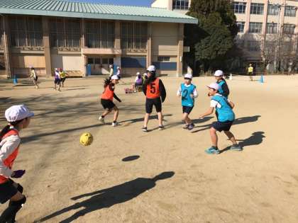 青チームは「ザ・ガード作戦」。ボールが真ん中の線より自分のゴール側にきたら、全力で戻ってゴールを守る。反対にいったら、みんなで攻撃します。