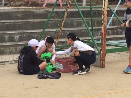 片付け忘れた道具を見かけると…「片付けときます!」と笑顔で一言。
